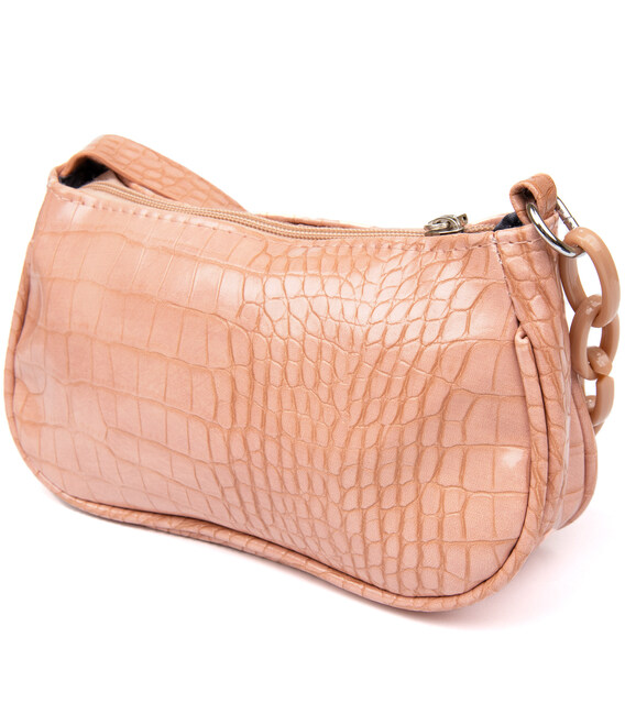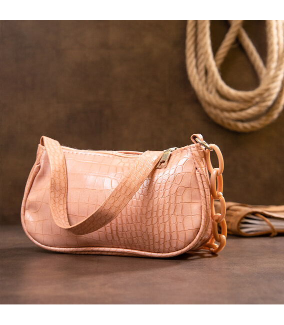 Описание Компактная сумка-багет из кожзаменителя под экзотику Vintage sale_14926 Розовая