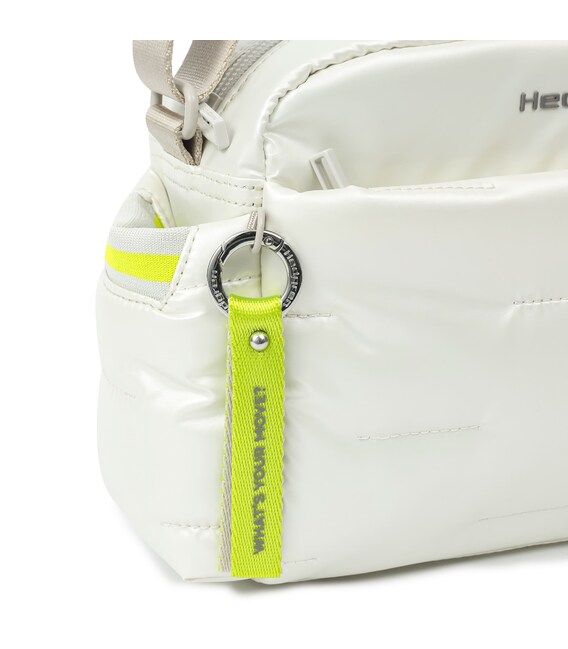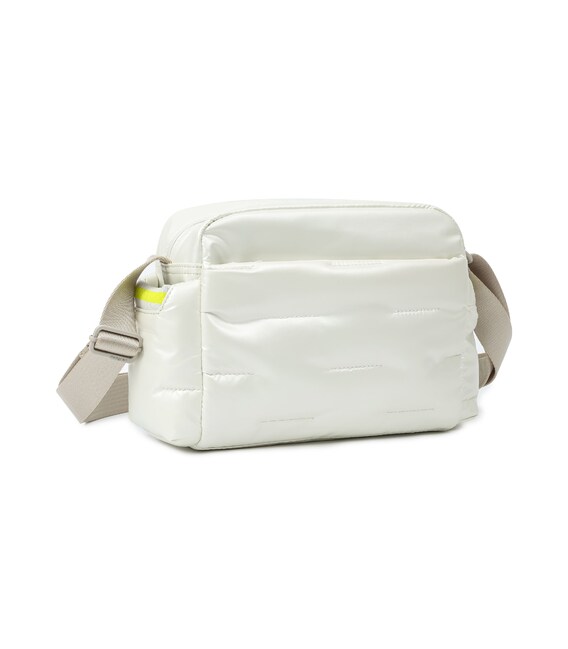 Вместительная, дутая сумка через плечо, освобождает руки и дает возможность быстро воспользоваться предметами первой необходимости в дороге или каждый день. Оснащена тремя отделениями на молнии и боковыми карманами для мелочей с карабином для ключей. В основном отделении 2 небольших кармана и съёмная, водоотталкивающая косметичка на молнии. Выполнена из плотного 100% polyester.