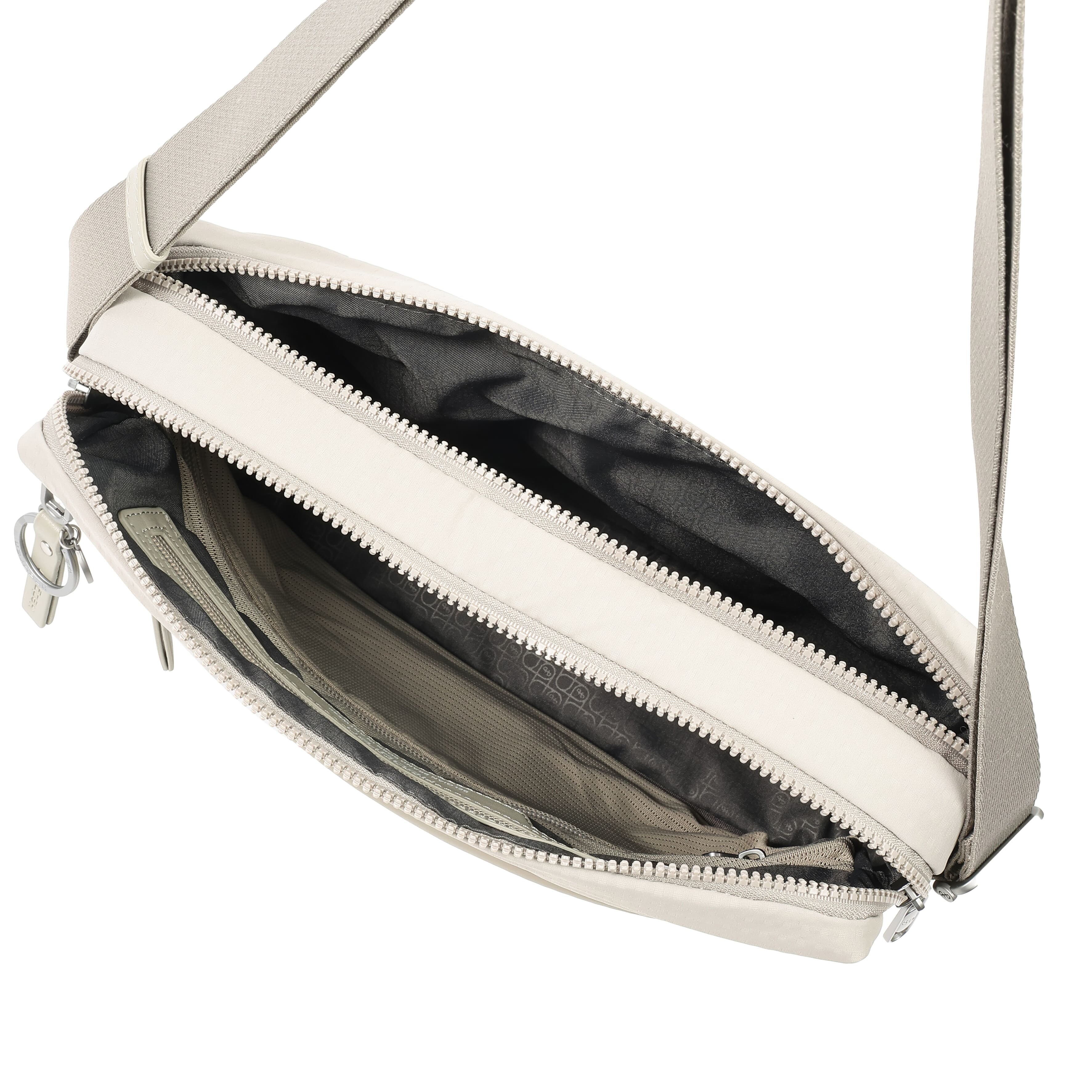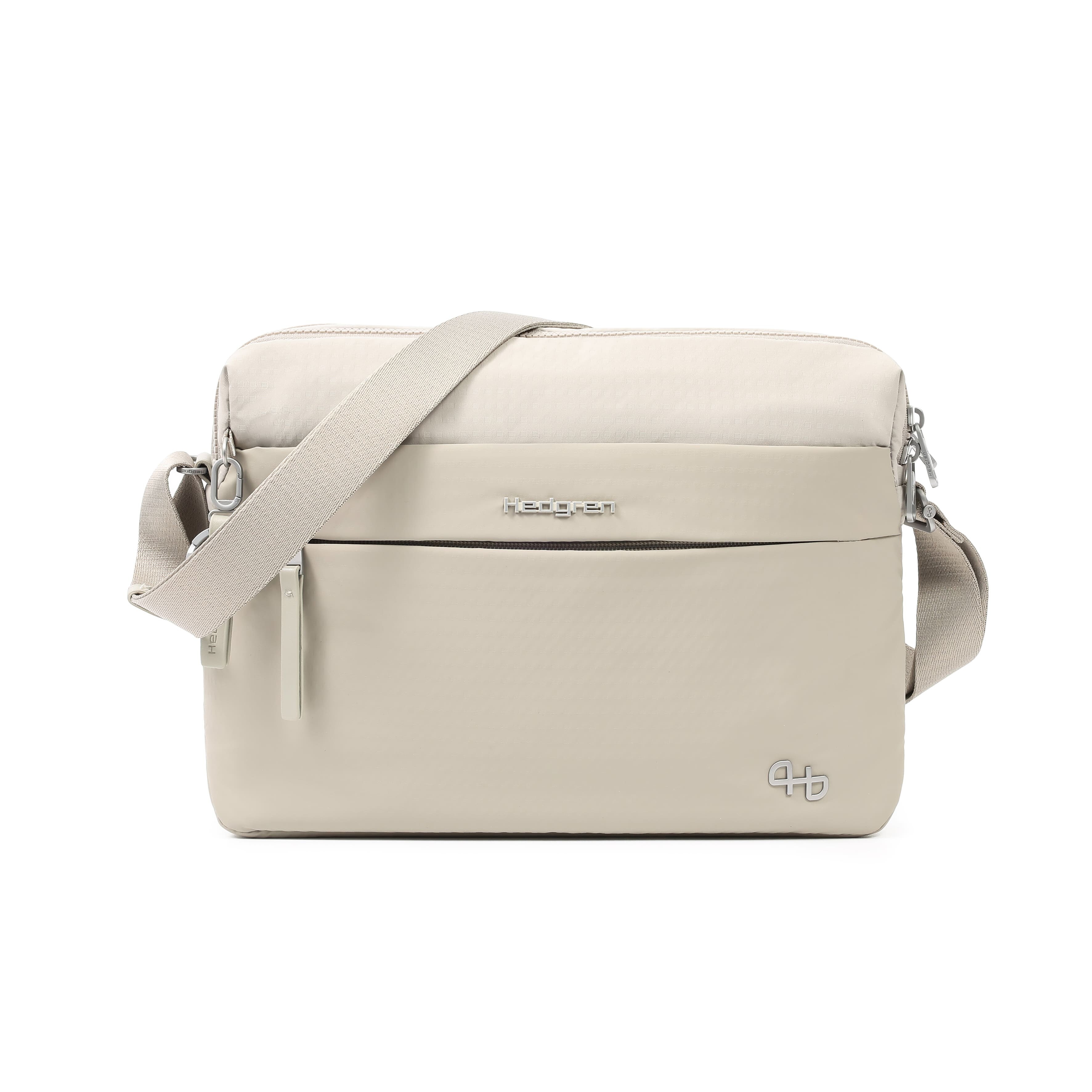 Удобная, вместительная сумка через плечо изготовлена из переработанной ткани в сочетании с эко-кожей. Оснащена двумя основными отделениями на молнии, с отделом для смартфона, и дополнительным карманом на молнии с RFID-защитой в первом, второй отдел предусмотрен для ноутбука 13" и документов формата А4, и поэтому на данном отделе молния, предусматривает возможность разместить навесной замок. Плотно прилегающая к телу как дополнительное средство безопасности также задний карман, при необходимости, благодаря молнии превращается в планку для фиксации на телескопическую ручку чемодана, что безусловно облегчает передвижение во время путешествий.