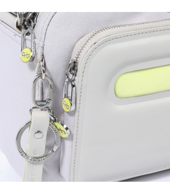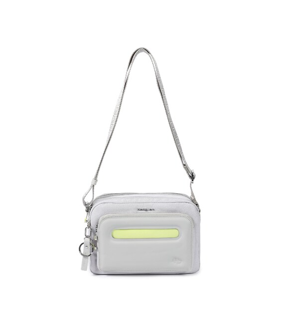 Всем любимая модель сумки-кроссовер, среднего размера. Оснащен двумя основными отделами на молнии, где в одном из присутствует дополнительный карман с RFID-защитой и крючок для ключей. Снаружи также оснащена не большими карманами, на передней и задней сторонах + изысканная съемная вешалка для ключей. Выполнена из 100% переработанного полиэстера PET (полиэфирная ткань из переработанных пластиковых бутылок). Также дополнительно. в комплекте съемная косметичка.