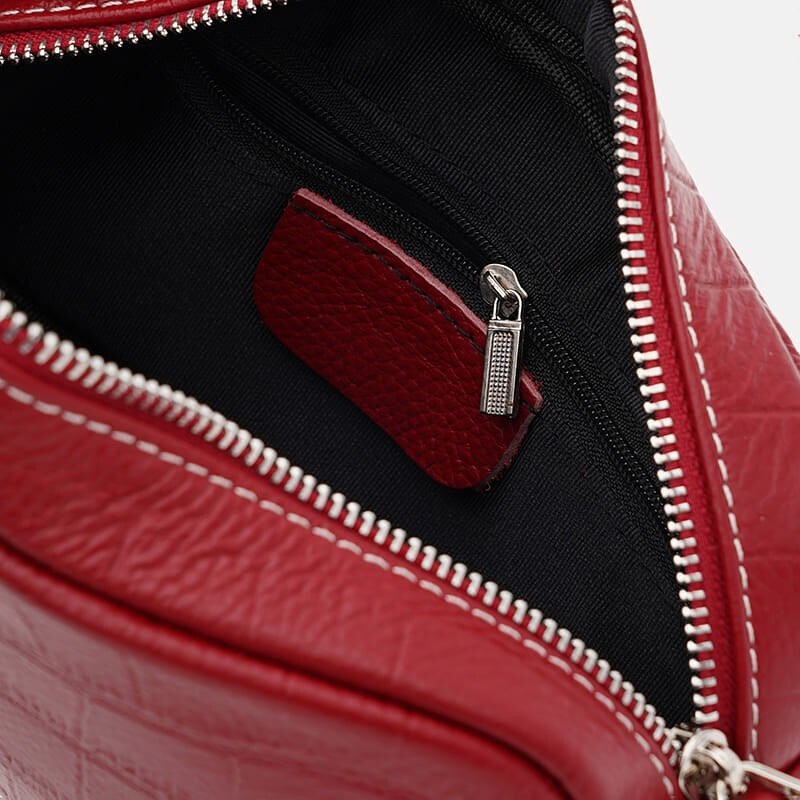 Женская кожаная сумка имеет 1 отделение на молнии, внутри 1 карман. Снаружи имеется 1 карман. Подкладка текстиль. Съемный плечевой ремень регулируется по длине.