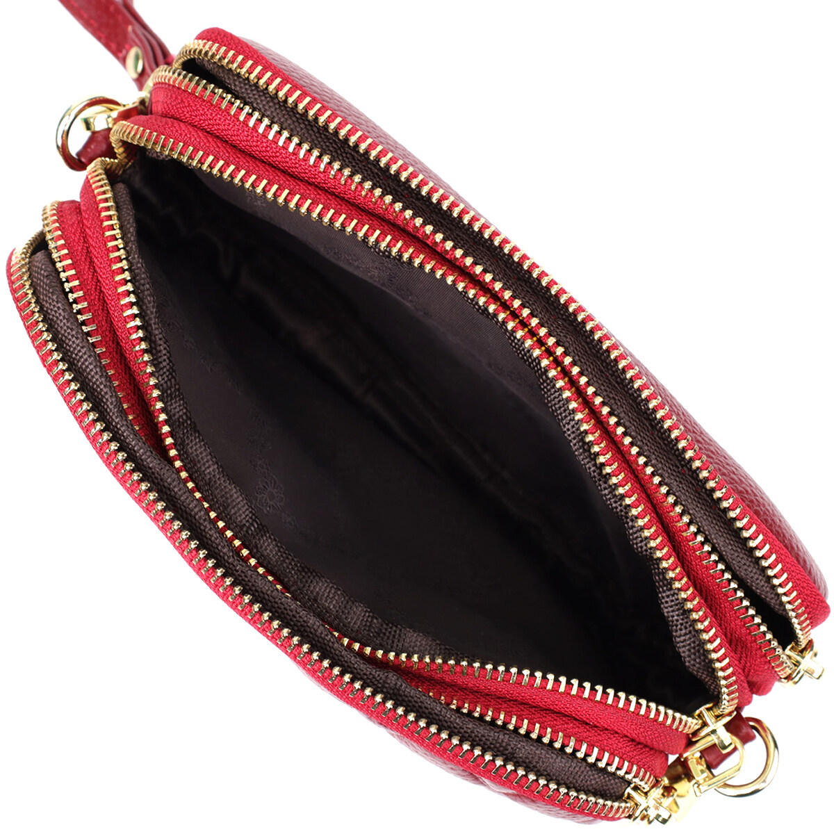Функциональная конструкция включает три отдельных отделения, каждое из которых закрывается на молнию. Это обеспечивает идеальную организацию внутреннего пространства: удобно распределяйте документы, косметику, гаджеты и личные вещи без лишнего беспорядка. Внутри предусмотрен потайной карман на молнии, идеально подходящий для хранения особенно ценных мелочей.