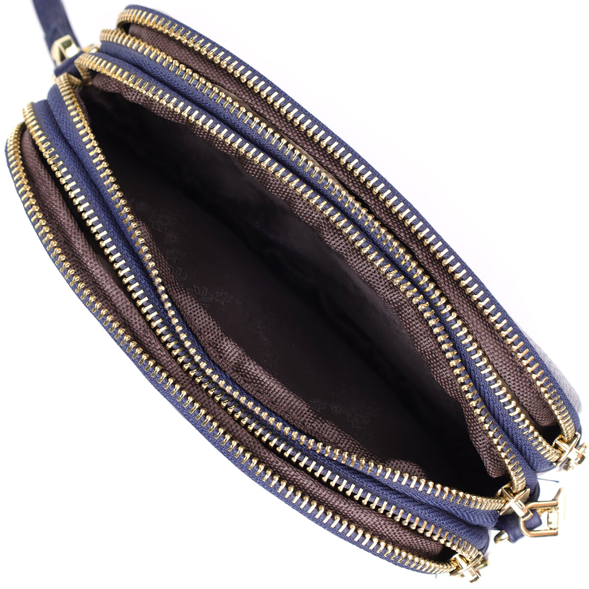 Функциональная конструкция включает три отдельных отделения, каждое из которых закрывается на молнию. Это обеспечивает идеальную организацию внутреннего пространства: удобно распределяйте документы, косметику, гаджеты и личные вещи без лишнего беспорядка. Внутри предусмотрен потайной карман на молнии, идеально подходящий для хранения особенно ценных мелочей.