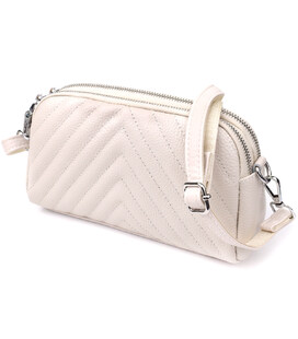 Элегантная белая кожаная сумка с декоративной прострочкой в виде треугольников — это сочетание современного стиля, изысканности и функциональности. Геометрическая строчка придаёт модели выразительный характер, подчёркивая структуру и качество натуральной кожи. Белоснежный оттенок делает сумку универсальной и освежающей, идеально подходящей как для повседневных, так и для более нарядных образов.