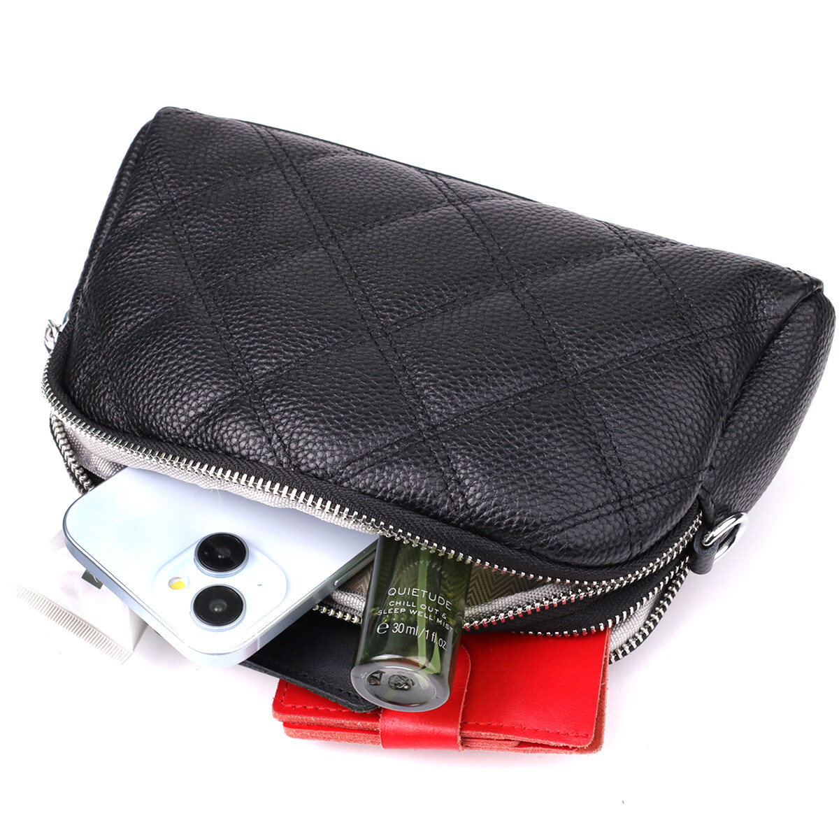 Стильная фурнитура серебристого цвета гармонично подчеркивает современный дизайн изделия. Съемный кожаный ремень позволяет носить сумку как на плече, так и через плечо, обеспечивая комфорт в повседневной носке.