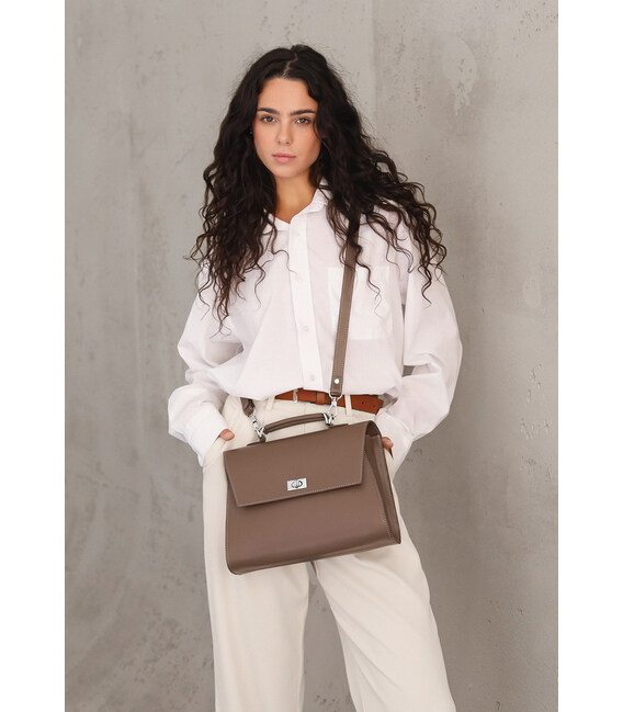Классическая кожаная сумка — это вне времени. Она всегда уместна, всегда элегантна и подчёркивает вкус своей обладательницы. Тёмно-бежевый оттенок придаёт образу утончённость, а лаконичный дизайн сочетает стиль и удобство. Продуманное внутреннее пространство позволяет аккуратно разместить все необходимые вещи, сохраняя порядок и комфорт каждый день.Если ты хочешь сумку, идеально подстроенную под себя — мы поможем воплотить это в жизнь. Можно добавить дополнительное отделение, изменить ремень или внести небольшие изменения. Также доступна услуга персонализации — именное тиснение или гравировка сделают аксессуар по-настоящему особенным. На каждую нашу модель действует гарантия 3 года
