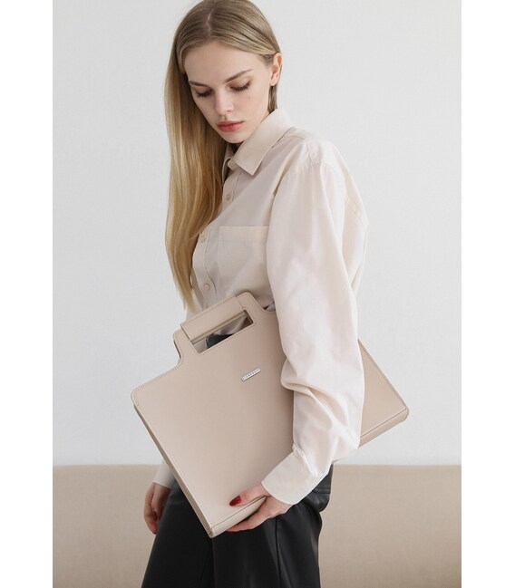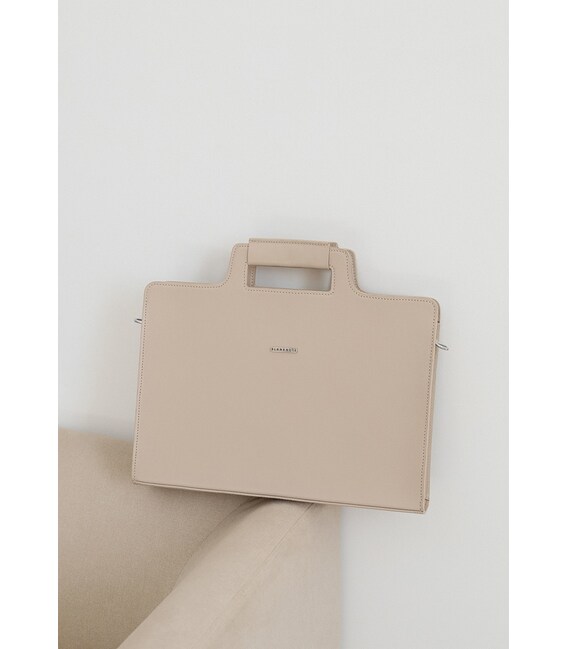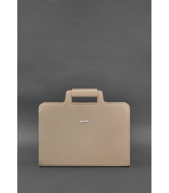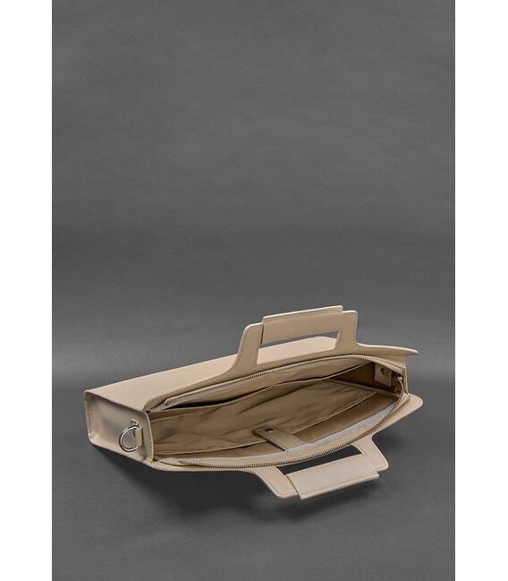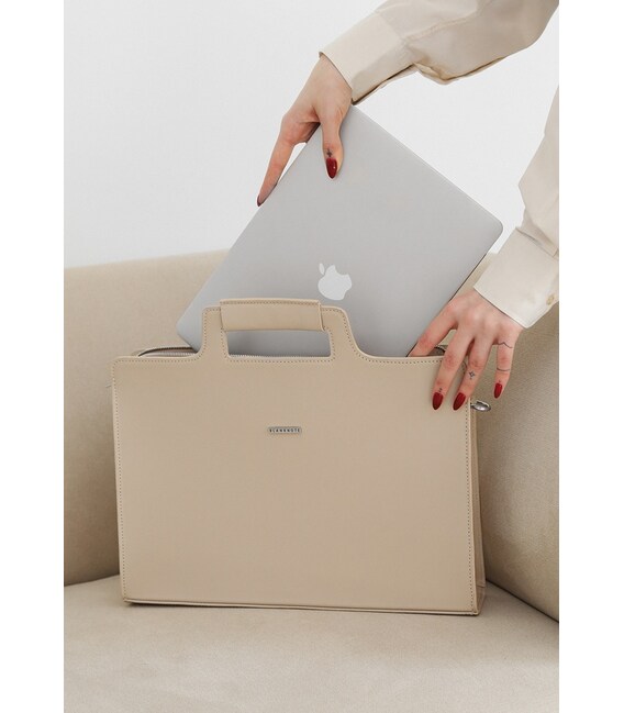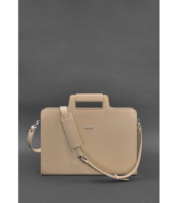 Описание Женская кожаная сумка для ноутбука и документов светло-бежевая