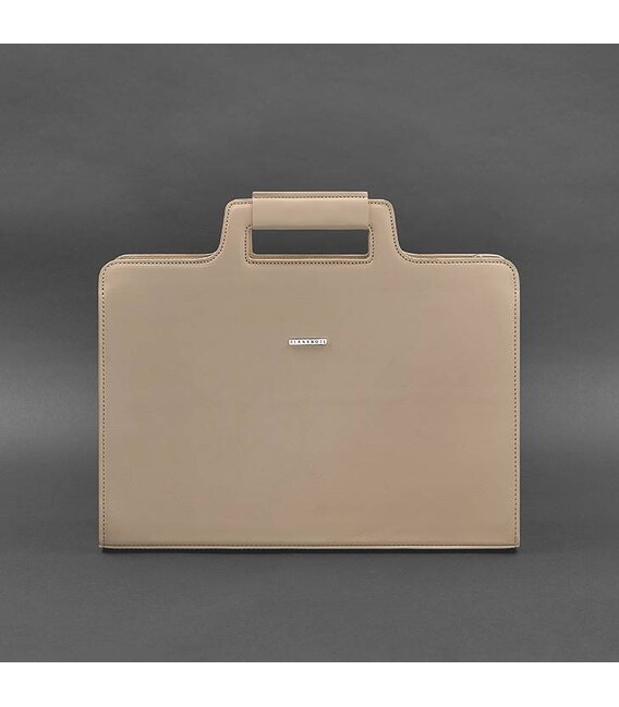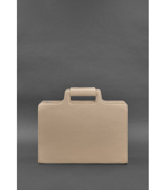 Женская кожаная сумка для ноутбука и документов светло-бежевая