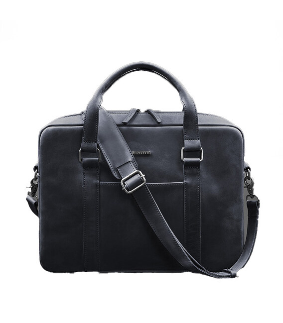 Описание Кожаная сумка для ноутбука и документов синяя Crazy Horse