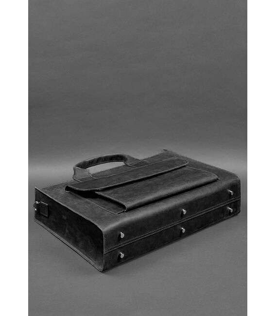 Кожаная сумка для ноутбука и документов Универсальная черная Crazy Horse