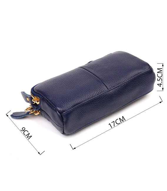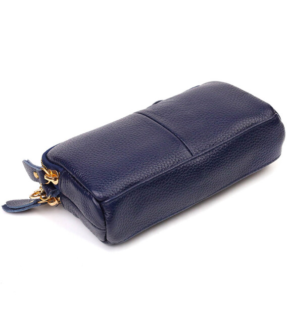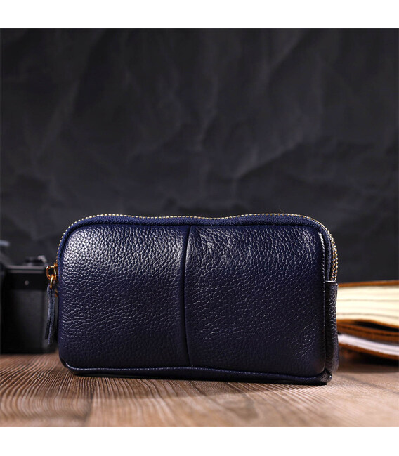 Описание Компактный женский клатч на два отделения из натуральной кожи 22089 Vintage Синий