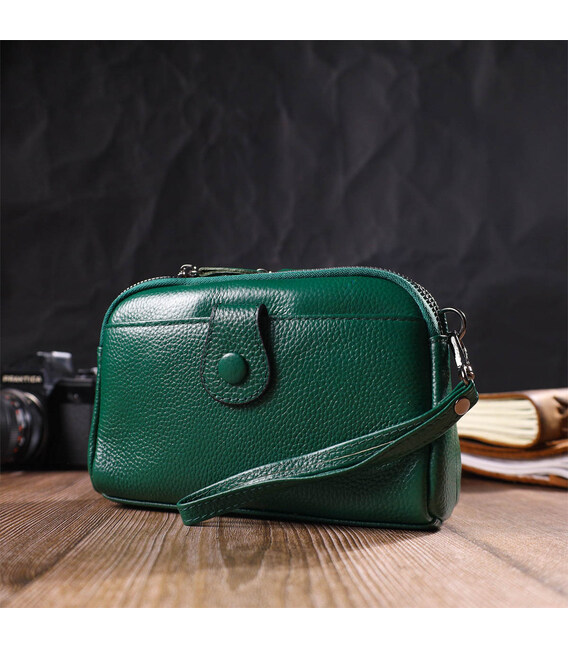 Сумка-клатч в оригинальном дизайне из натуральной кожи 22101 Vintage Зеленая