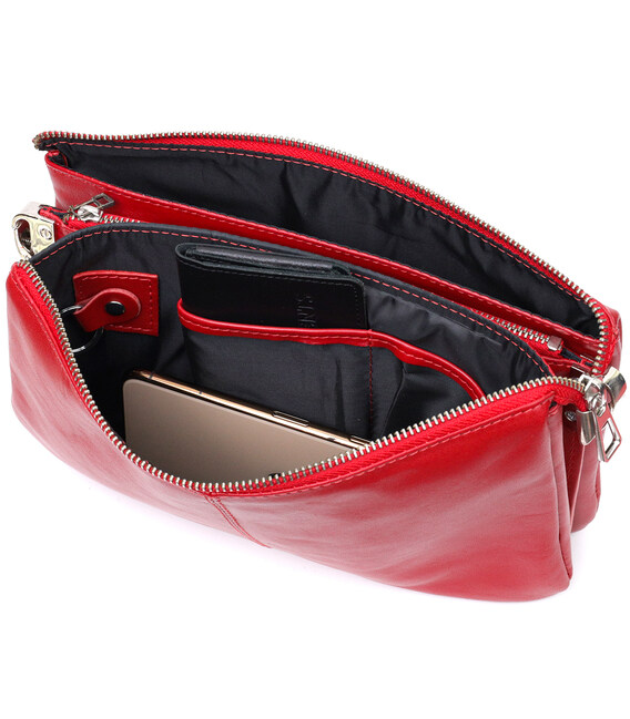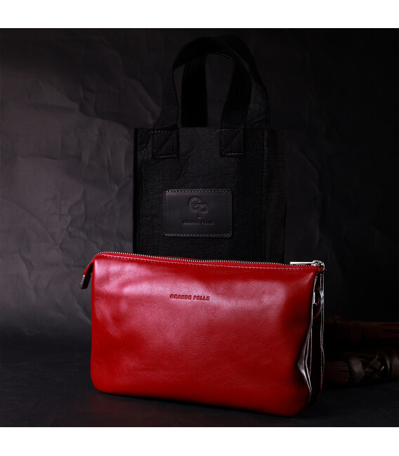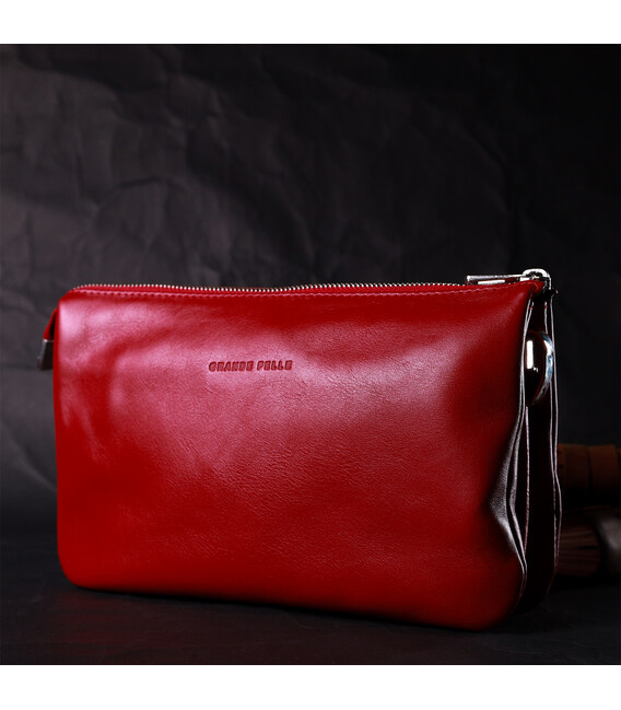 Описание Яркий женский клатч из натуральной кожи GRANDE PELLE 11670 Красный