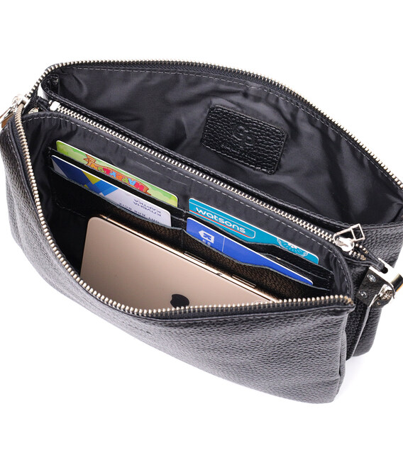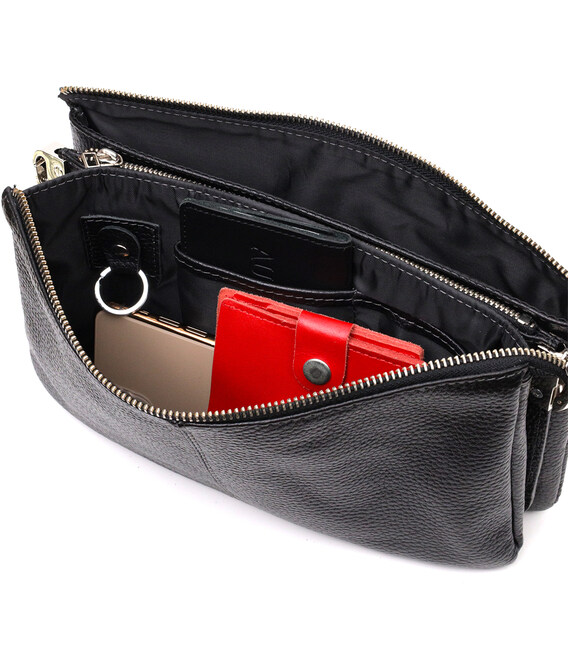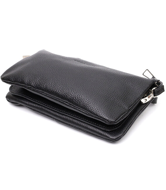 Описание Удобный женский клатч из натуральной зернистой кожи GRANDE PELLE 11697 Черный
