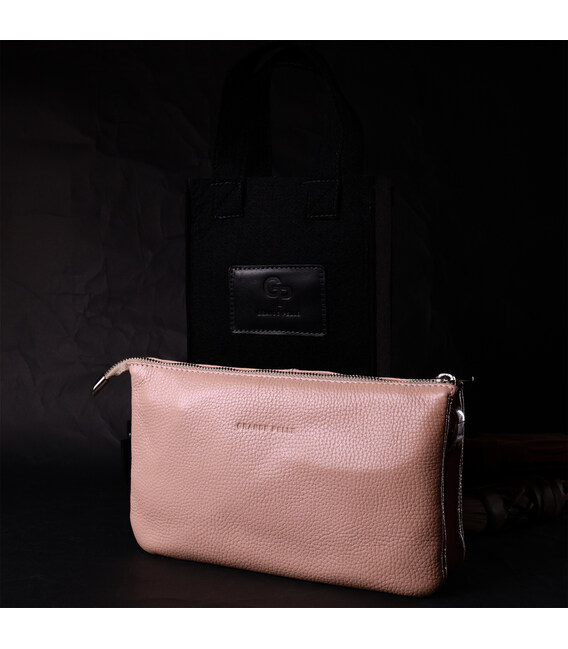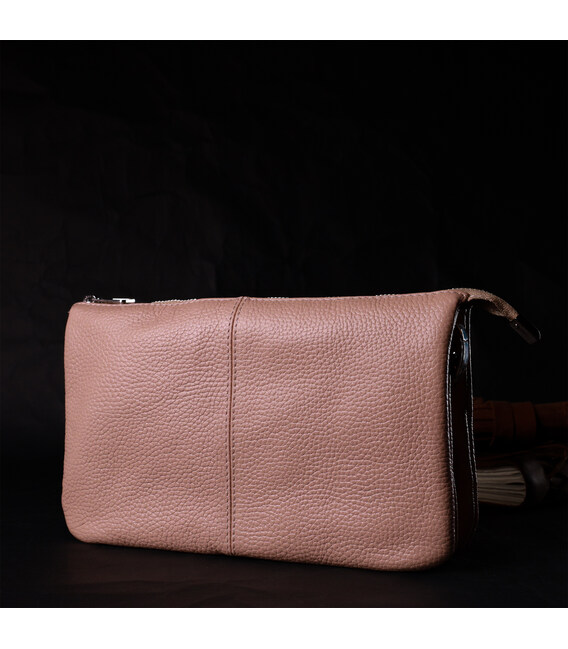 Описание Очаровательный женский клатч из натуральной зернистой кожи GRANDE PELLE 11698 Пудровый