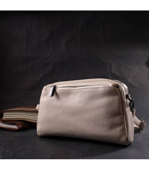 Стильная и удобная женская сумка, на каждый день. Изделие пошито из качественной кожи, которая отлично носится и не теряет свой первоначальный вид. Аксессуар состоит из одного основного отделения, потайного кармана на молнии, кармана открытого типа, двух наружных карманов, что закрываются на молнии. Носить сумку можно в руках, на плече и через плечо, для этого имеется кожаный съемный ремень. В изделии использована качественная фурнитура цвета темного серебра. Универсальный вариант сумки как на вечер так и в качестве сумочки на каждый день.