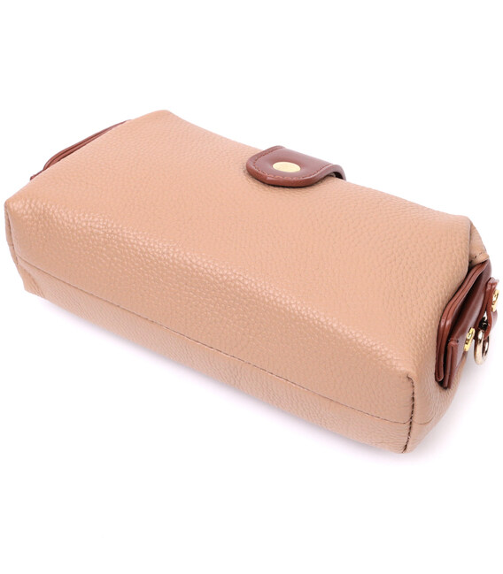 Описание Женский кожаный клатч с защелкой для карт купюр и телефона Vintage 22423 Бежевый