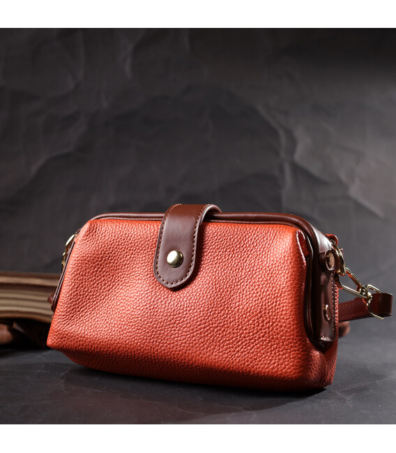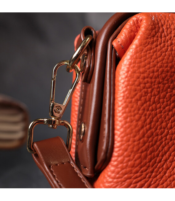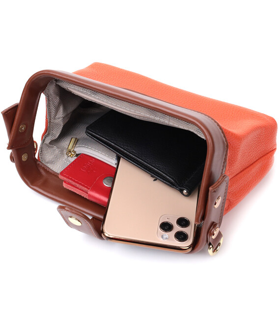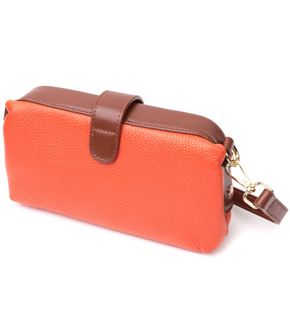 Описание Яркий клатч с интересной защелкой из натуральной кожи Vintage 22424 Оранжевый