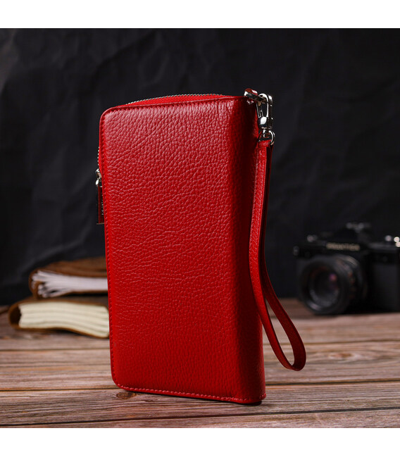 Великолепный клатч для деловой и стильной женщины из натуральной кожи. Аксессуар имеет большое отделение для купюр, 15 ячеек для карточек (одна под сеточкой), карман-перегородку на молнии, три прилегающих кармана, карман с расширителем на молнии снаружи и держатель для ручки. Носить данную модель удобно в руке или же при помощи съемного кистевого ремня. Закрывается аксессуар на молнию. Приобретая кожаный аксессуар этой фирмы себе или на подарок, будьте уверены, что он будет радовать глаз не один год.