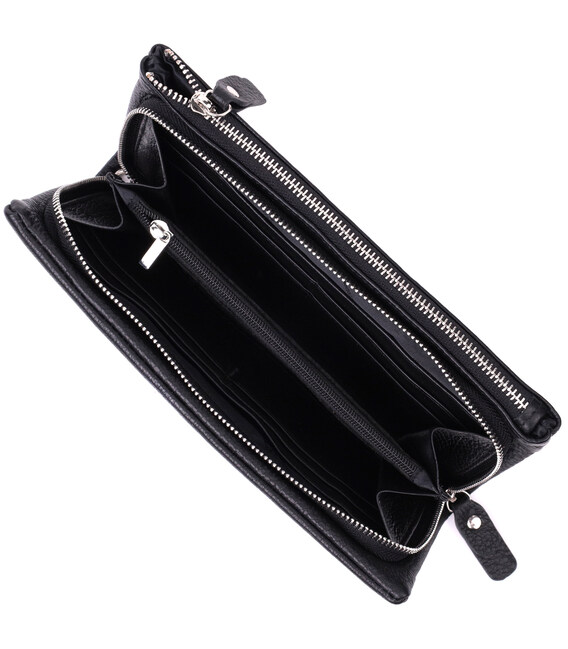 Описание Женский кошелек-клатч с двумя молниями из натуральной кожи ST Leather 22527 Черный