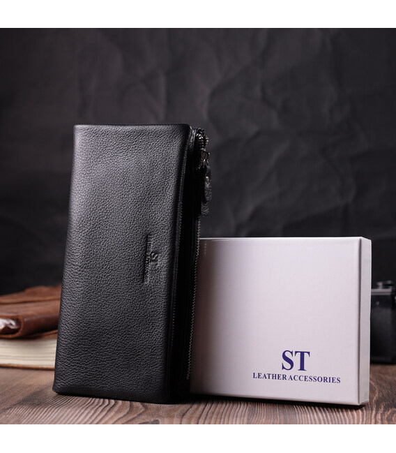 Женский кошелек-клатч с двумя молниями из натуральной кожи ST Leather 22527 Черный
