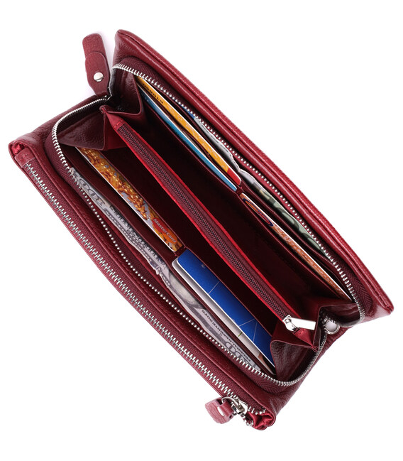 Описание Добротный женский кошелек-клатч с двумя молниями из натуральной кожи ST Leather 22528 Бордовый