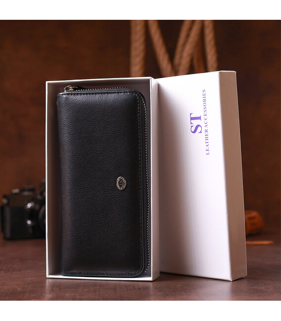 Описание Кожаный женский клатч на молнии ST Leather 18933 Черный