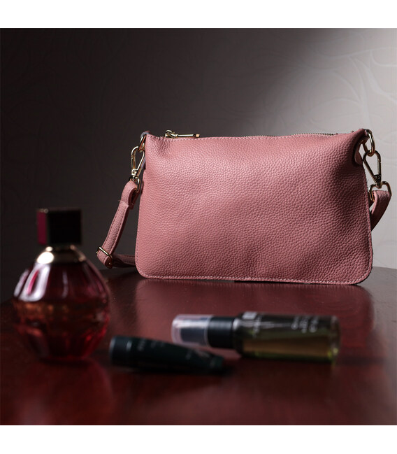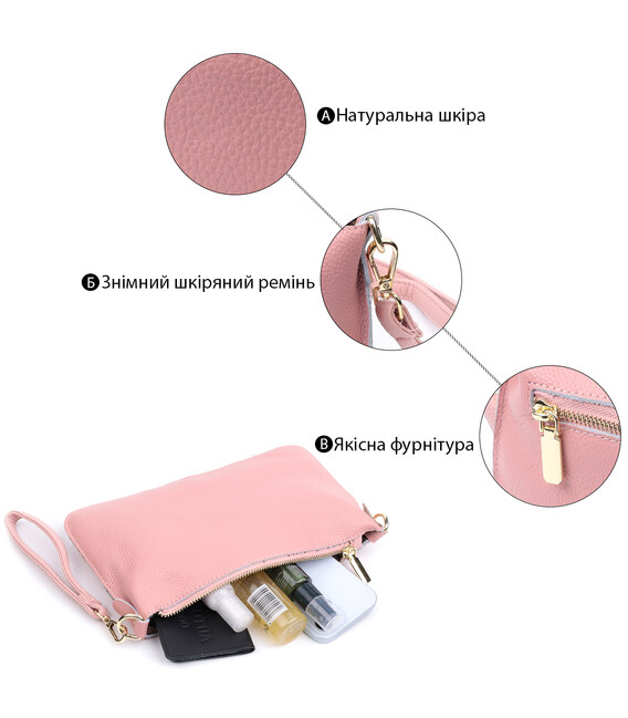Описание Красивая женская сумка-клатч с двумя ремнями из натуральной кожи Vintage 22644 Розовая