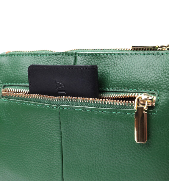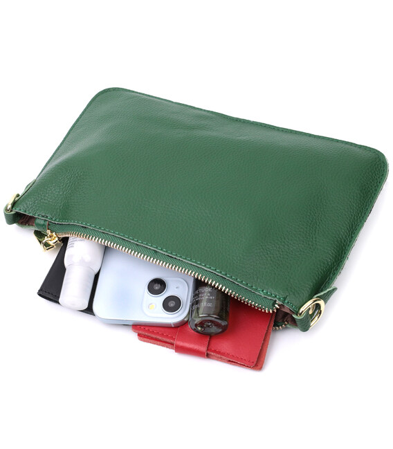 Оригинальная женская сумка-клатч с двумя ремнями из натуральной кожи Vintage 22647 Зеленая