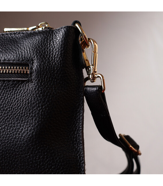 Описание Женская сумка-клатч в классическом цвете с двумя ремнями из натуральной кожи Vintage 22649 Черная