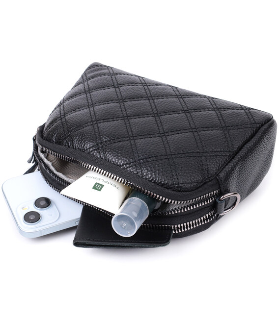 Замечательная сумка для женщин из натуральной кожи высокого качества. Изделие очень удобное, можно носить на плече, руках и на кисти, для этого имеется съемный кожаный ремешок и съемный кистевой ремень. На лицевой стороне сумка прошита ромбами, что придает особого шарму изделию. Модель дополнена фурнитурой цвета темного серебра. Аксессуар имеет два отделения, что закрываются на молнии, два кармашка - один на молнии и один открытого типа внутри и один карман на молнии на тыльной стороне. Если Вам нужен вариант повседневной сумки, которая отлично подойдет в качестве вечерней, то данная модель идеальный вариант.