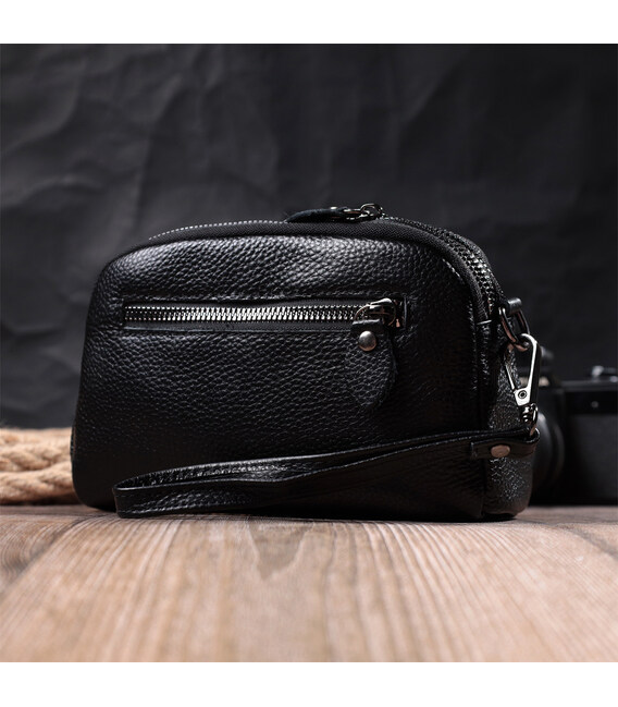 Описание Женская сумка прошита ромбами на лицевой стороне из натуральной кожи Vintage 22807 Черный