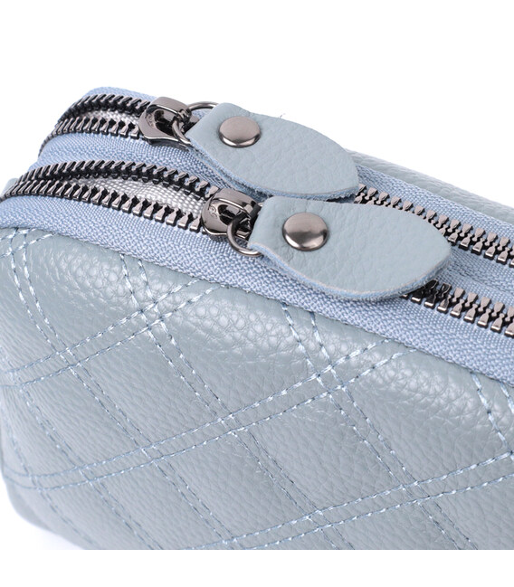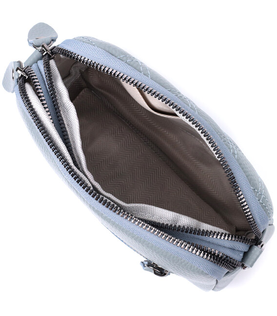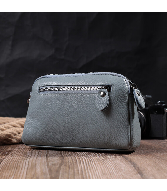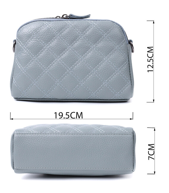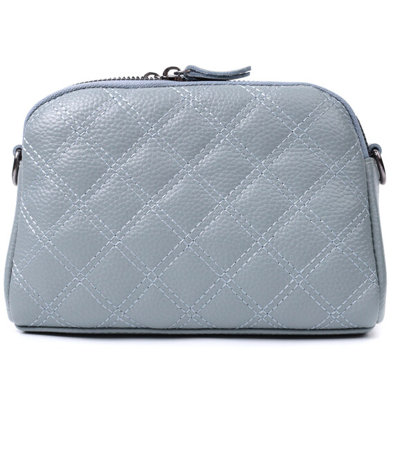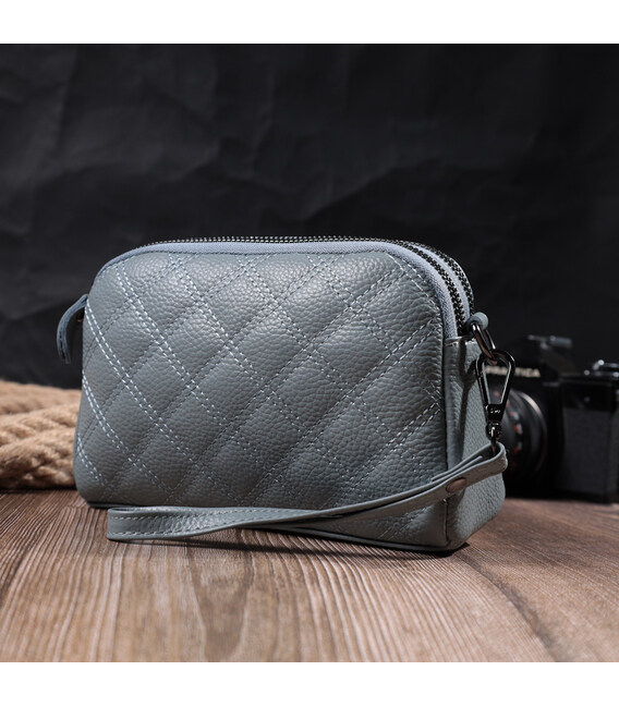 Стильная сумка для женщин из натуральной кожи высокого качества. Изделие очень удобное, можно носить на плече, руках и на кисти, для этого имеется съемный кожаный ремешок и съемный кистевой ремень. На лицевой стороне сумка прошита ромбами, что придает особого шарму изделию. Модель дополнена фурнитурой цвета темного серебра. Аксессуар имеет два отделения, что закрываются на молнии, два кармашка - один на молнии и один открытого типа внутри и один карман на молнии на тыльной стороне. Если Вам нужен вариант повседневной сумки, которая отлично подойдет в качестве вечерней, то данная модель идеальный вариант.