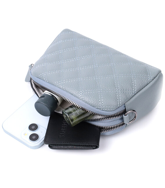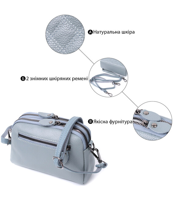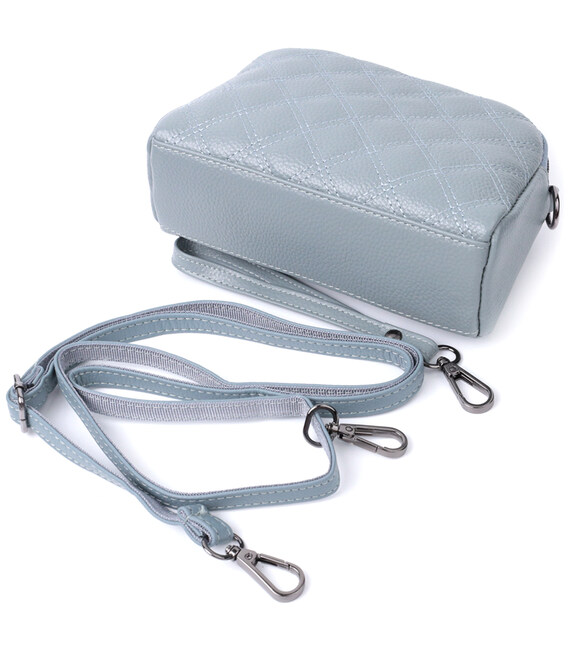 Описание Элегантная женская сумка прошита ромбами на лицевой стороне из натуральной кожи Vintage 22808 Синий