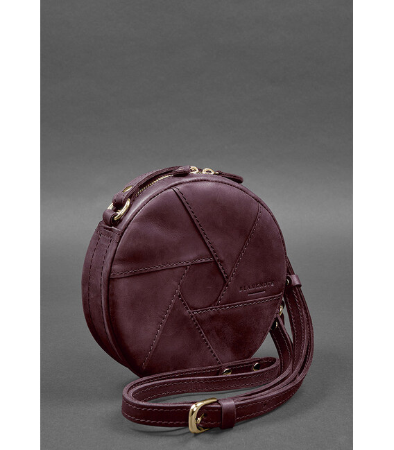 Описание Кожаная круглая женская сумка Бон-Бон бордовая Crazy Horse