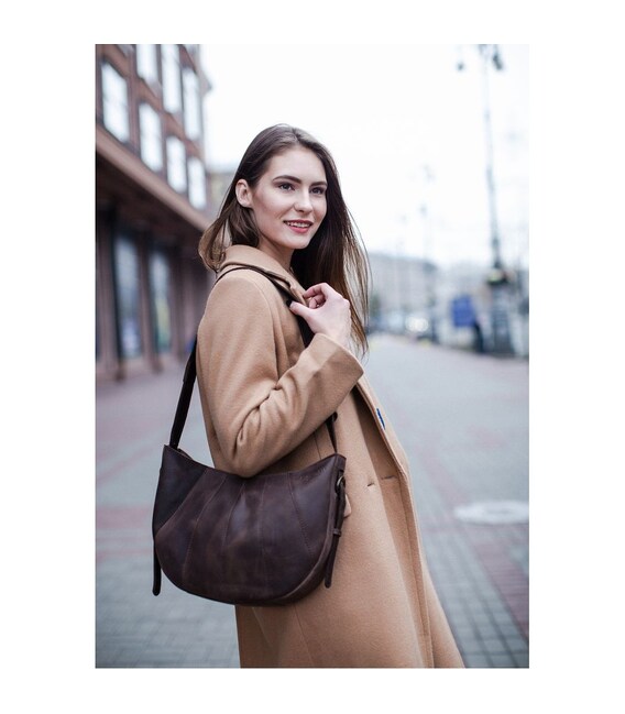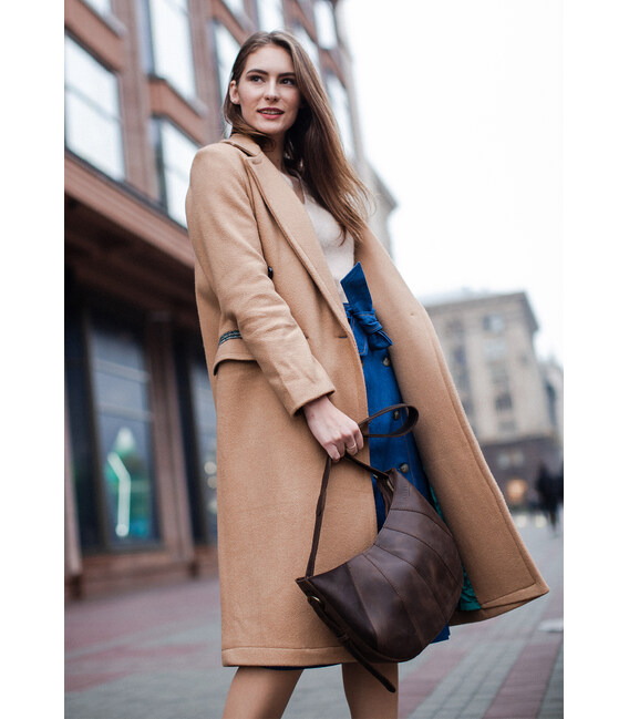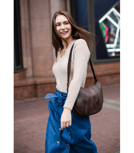 Описание Кожаная женская сумка Круассан темно-коричневый Crazy Horse