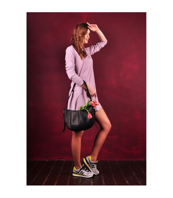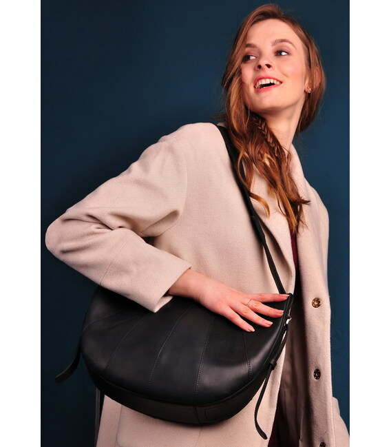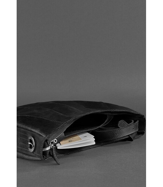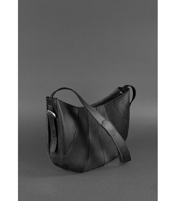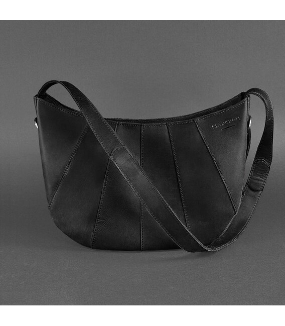 Описание Кожаная женская сумка Круассан черная Crazy Horse
