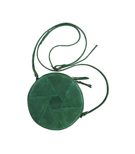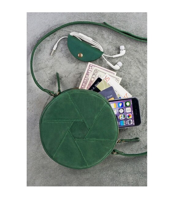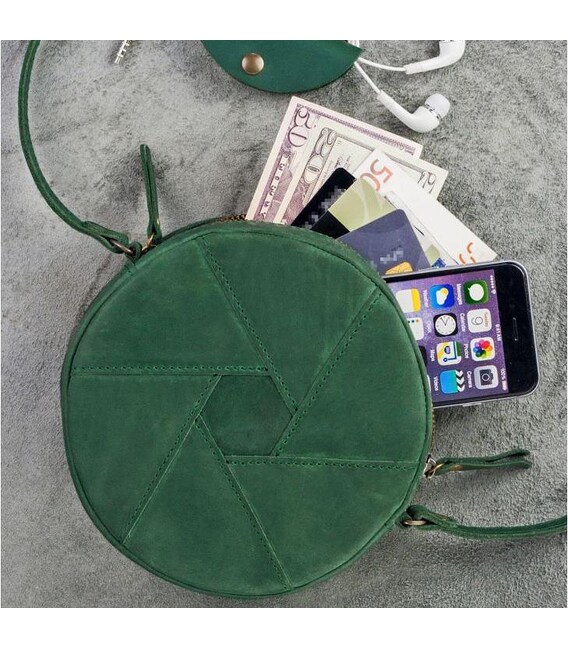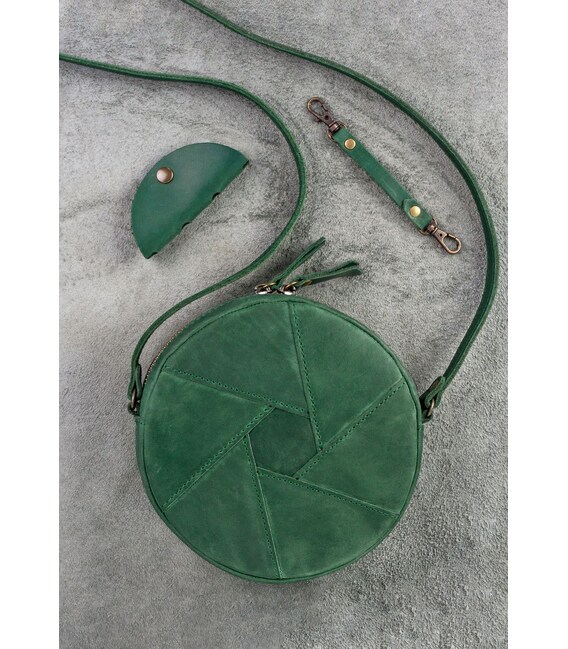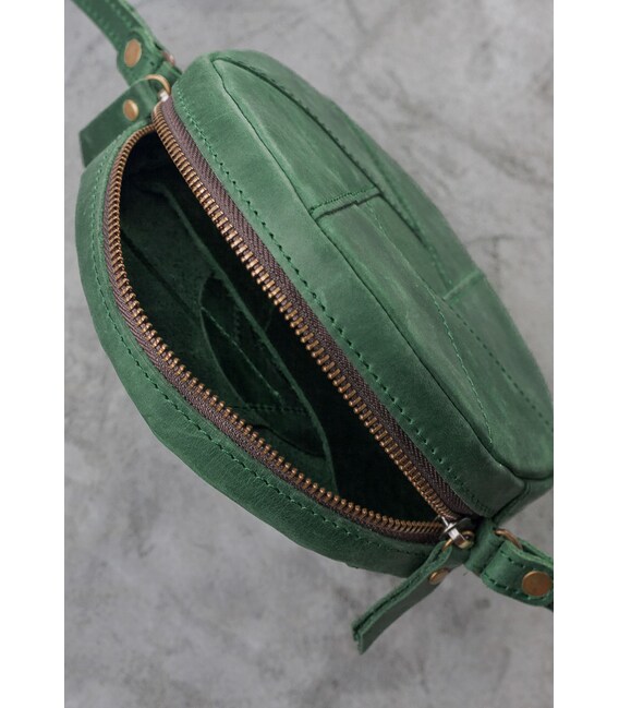 Описание Кожаная круглая женская сумка Бон-Бон зеленая Crazy Horse