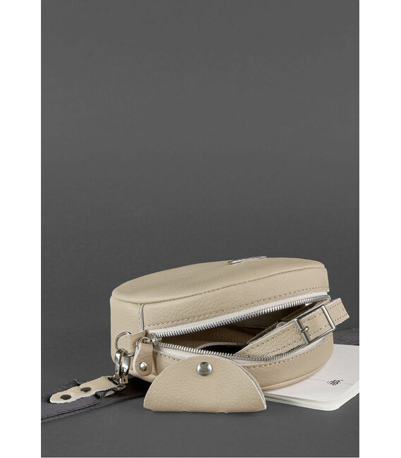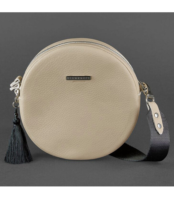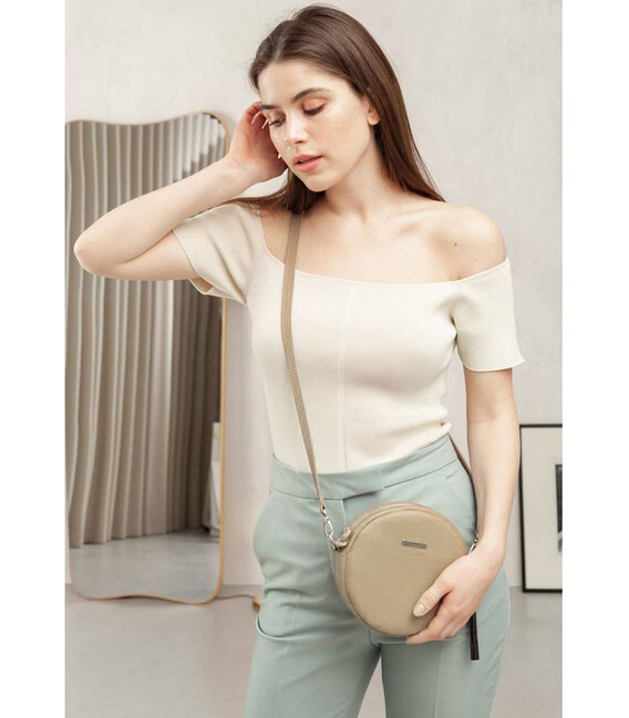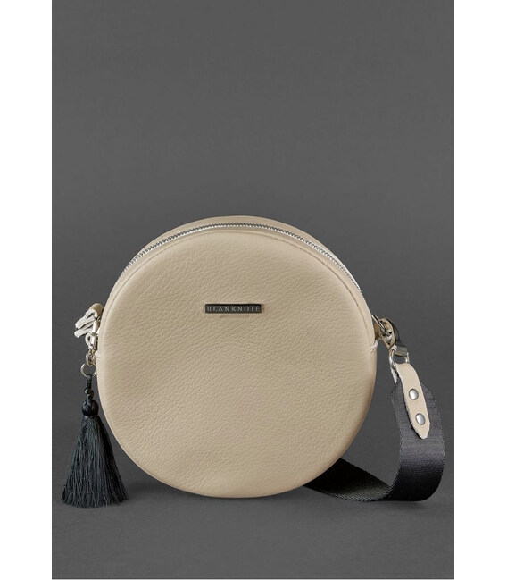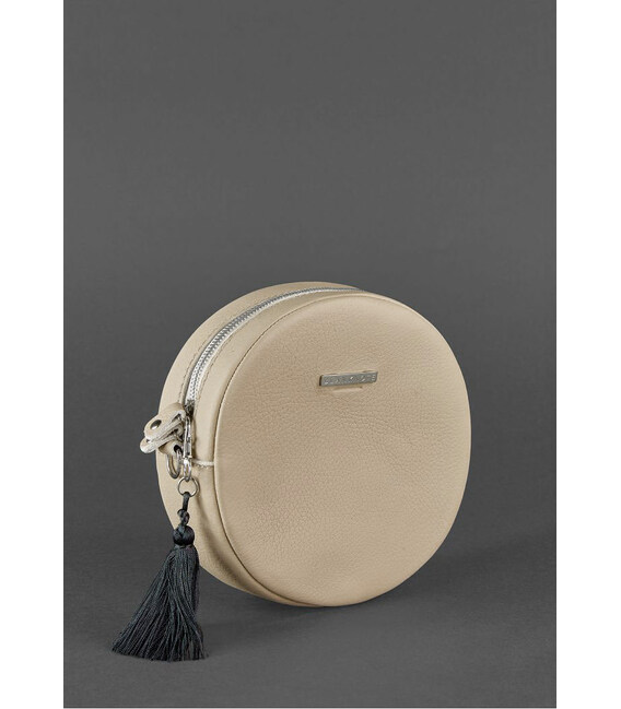 Круглая женская кожаная сумочка Tablet светло-бежевая