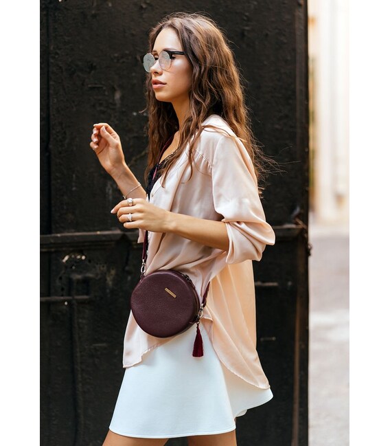 Описание Круглая кожаная женская сумочка Tablet Марсала