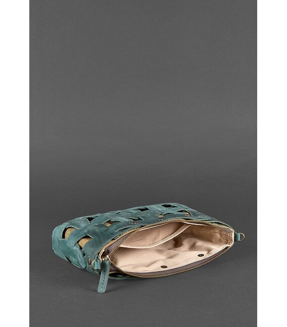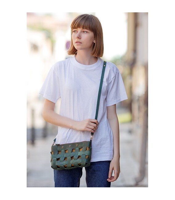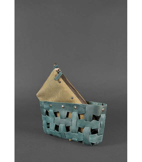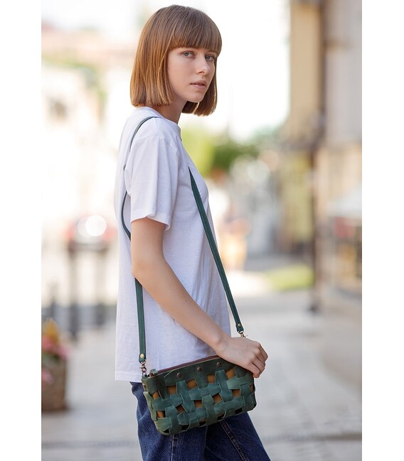 Описание Кожаная плетеная женская сумка Пазл S зеленая Crazy Horse
