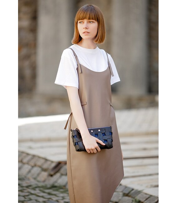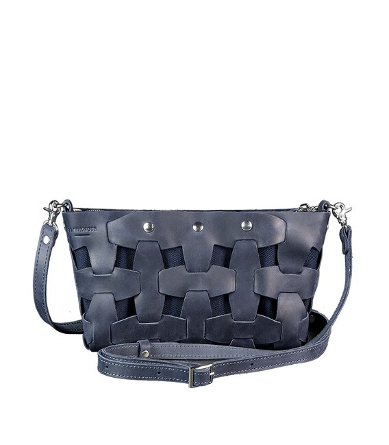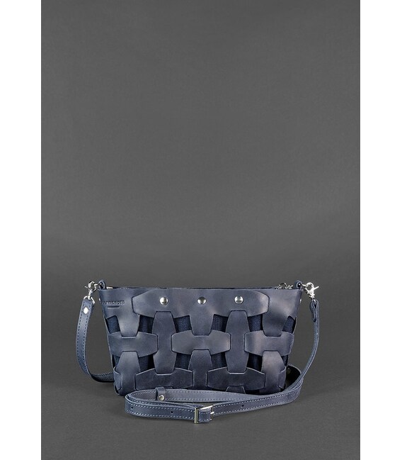 Описание Кожаная плетеная женская сумка Пазл S синяя Crazy Horse