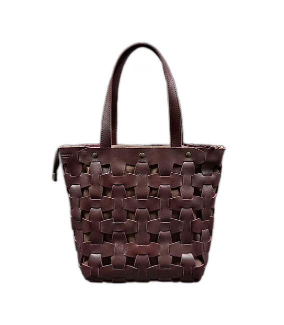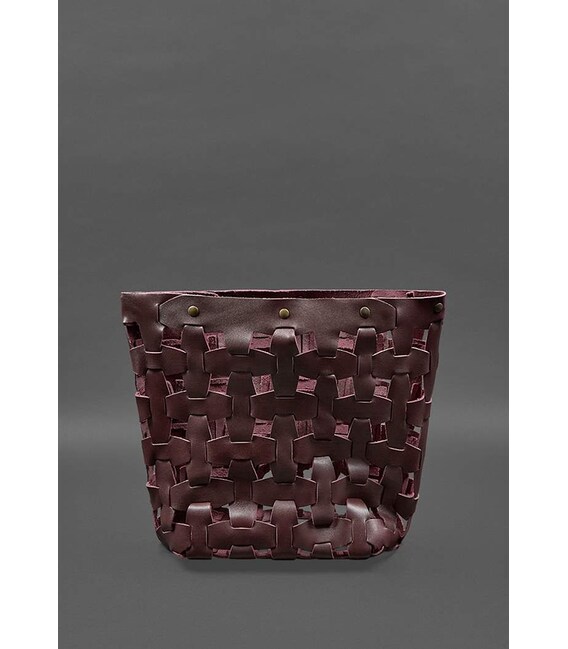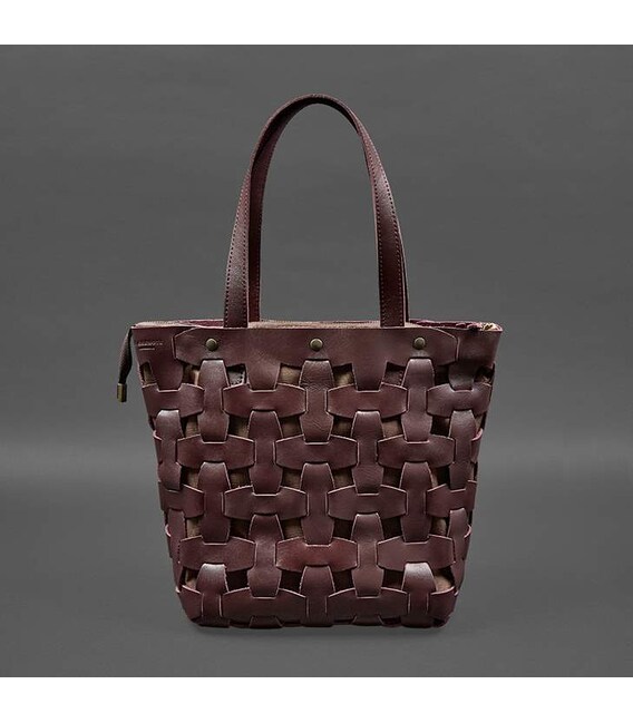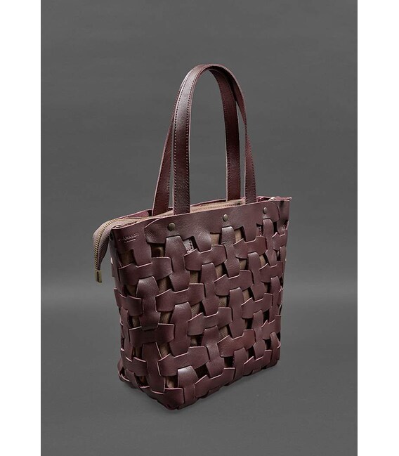 Описание Кожаная плетеная женская сумка Пазл L бордовая краст