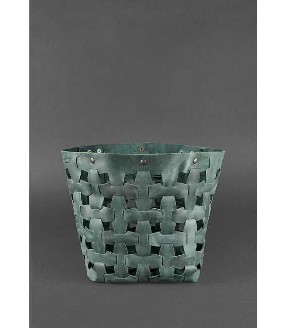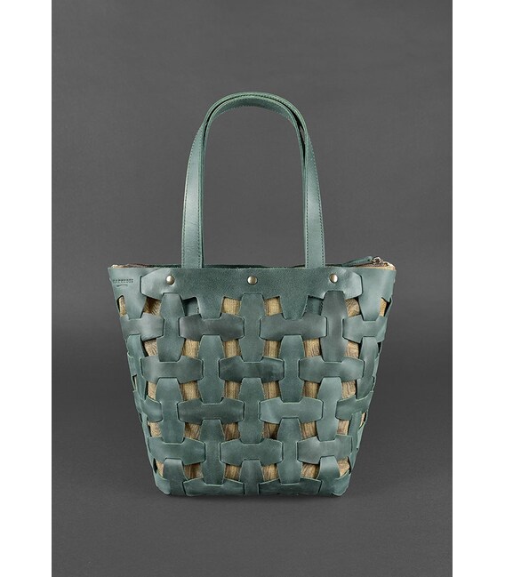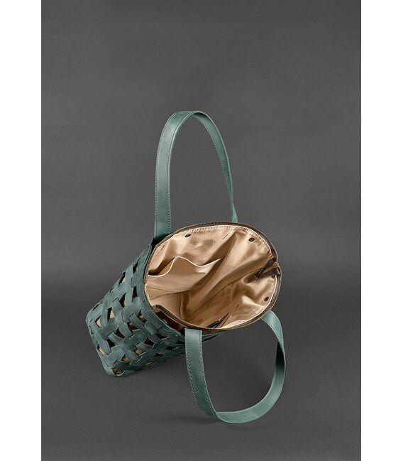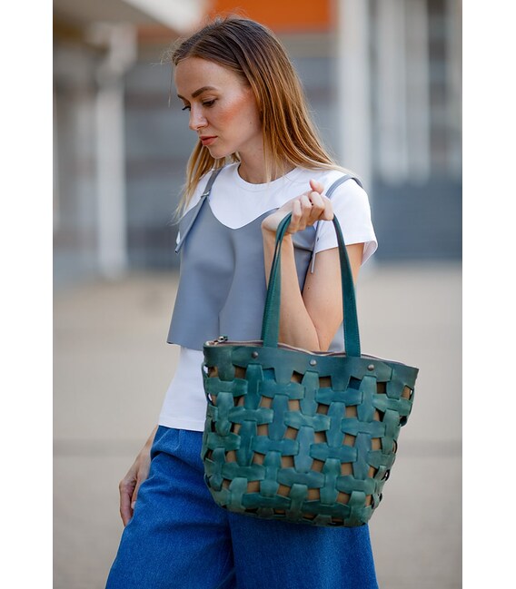 Описание Кожаная плетеная женская сумка Пазл L зеленая Crazy Horse