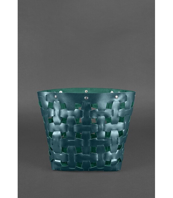 Описание Кожаная плетеная женская сумка Пазл L зеленая Krast