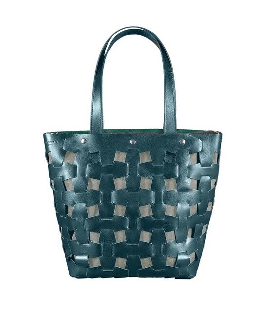 Кожаная вместительная сумка-шоппер подчеркнет ваш вкус и оригинально дополнит повседневный look. Стильный бирюзовый цвет аксессуара добавит свежести в образ, а оригинальный дизайн привнесет новые смыслы.Каркас сумки сделан из полосок натуральной кожи Krast, соединенных по принципу пазла. Кожа Krast достаточно плотная и прочная, устойчивая к потертостям и царапинам.Для пошива внутренней сумки использовался текстиль Cordura. Это материал из нейлона, обработанный специальной водоотталкивающей пропиткой. Cordura широко используют для изготовления тактической и туристической одежды. При необходимости внутреннюю сумку можно легко отстегнуть.Закрывается сумка на прочную металлическую молнию, внутри имеется одно отделение, кармашек на молнии и накладной карман для мелочей.Гарантия на сумку - 3 года с момента покупки.Фурнитура и комплектация может быть изменена производителем
