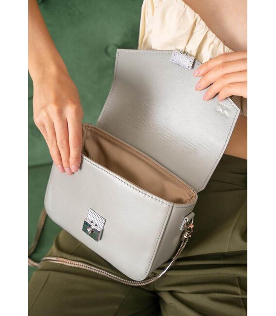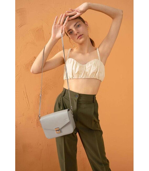 Размер : 20х15х7 смМатериал : кожа, тканевая подкладкаВнутри : большое отделениеСнаружи : карман на молнии на задней стенке сумкиФурнитура : металлическая, цвет никельШлейка съёмная: цепочка или шлейка-лента на выбор.