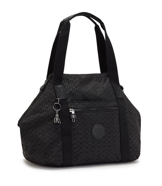 Вместительная женская сумка для работы, досуга и поездок - Kipling ART в черном принтованном дизайне из коллекции Kipling Basic. Модель с трансформируемыми углами – это сразу два силуэта вашей любимой сумки Art. Сняв ремень и застегнув молнии на углах, выходит модель неотразимой и нетривиальной формы. Две средние ручки и длинный ремень предлагают вариативность в ношении (в руках, на изгибе руки или на плече). Сумка Kipling легкая и вместительная, а веселая обезьянка – прекрасный компаньон для ежедневных приключений!Информация о сумке Art - K21091 (K59):✔ Цвет и название дизайна: Signature Emb (черный нейлон с графикой).✔ Материал: 100% полиамид (легкий, прочный и водоотталкивающий текстиль).✔ Подкладка: 100% переработанный полиэстер.✔ Застежки: молнии с лого.✔ Особенность дизайна: углы на молнии для трансформации сумки.✔ Две ручки средней длины + съемный регулируемый ремень на плечо.✔ Наплечный ремень регулируется (максимальная длина - 138 см).✔ Фишка бренда – брелок-талисман от Kipling – обезьянка-робот.✔ Узнаваемый круглый логотип Kipling.✔ Средний размер: 27 х 44 х 20 см / 21 л.✔ Бренд: KIPLING (Бельгия) - 100% Оригинал.• 1 просторное отделение на молнии.• Внутри: 3 кармана (1 на молнии + 2 открытых - для мобильного и кошелька).• Петли для ручек.• Карабин для ключей.• Спереди: 2 кармана (1 на молнии + 1 открытый).Модные сумки Kipling на сайте chemodanoff.com.ua - 100% Оригинал (Бельгия).Быстрая доставка по Киеву и всей Украине.