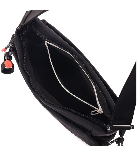 Удобная сумка-кроссовер. изготовлена из переработанной ткани. Оснащена основным отделением на молнии с отделом для смартфона и дополнительным карманом на молнии. Снаружи оснащена карманами по бокам, для предметов первой необходимости. На заднем кармане изделия предусмотрена утопленная молния, плотно прилегающая к телу, как дополнительное средство безопасности. Также, при необходимости сумка расширяется и имеет боковые карманы для бутылки/зонтики. Сумку можно носить благодаря регулируемому удлинению ремня.