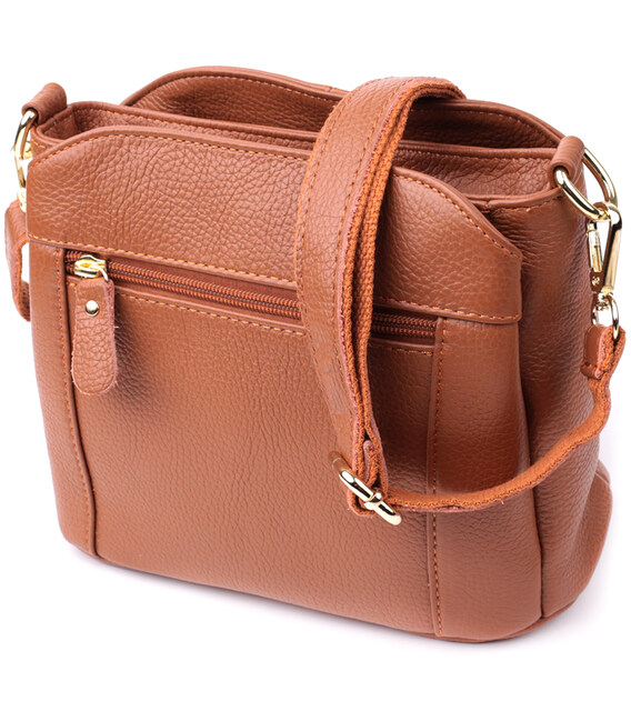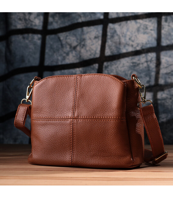 Оригинальная сумка для женщин небольшого размера на одно основное отделения из натуральной кожи флотар, прошитая светлой нитью по краям и накрест на лицевой стороне. В аксессуаре использована качественная фурнитура цвета желтого золота. Отличный вариант сумки для женщин, которые любят качественные и стильные вещи.